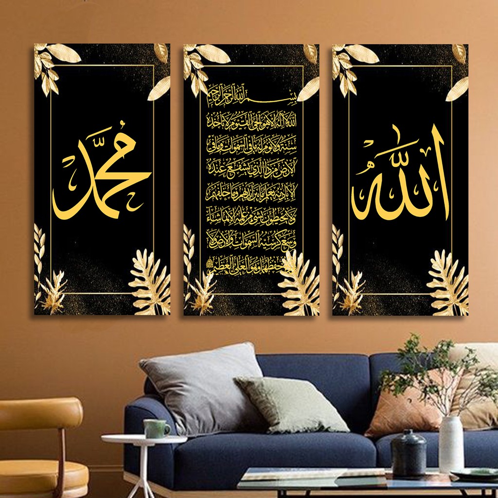 Jual Hiasan Dinding Ruang Tamu Kaligrafi Ayat Kursi Set Allah Muhammad Shopee Indonesia